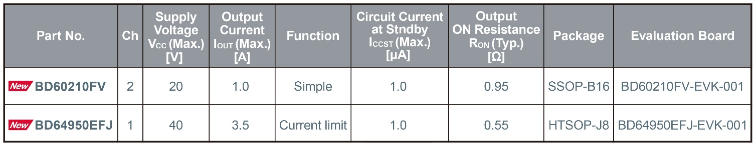 两款产品均采用通用性好的封装形式,不仅易于引入新设计中,还可显著提升电路变更、衍生型号开发以及设计标准化的效率。另外,新产品还实现低待机电流(Typ:0.0μA,Max:1.0μA),可大幅提升应用产品待机时的节能性能。