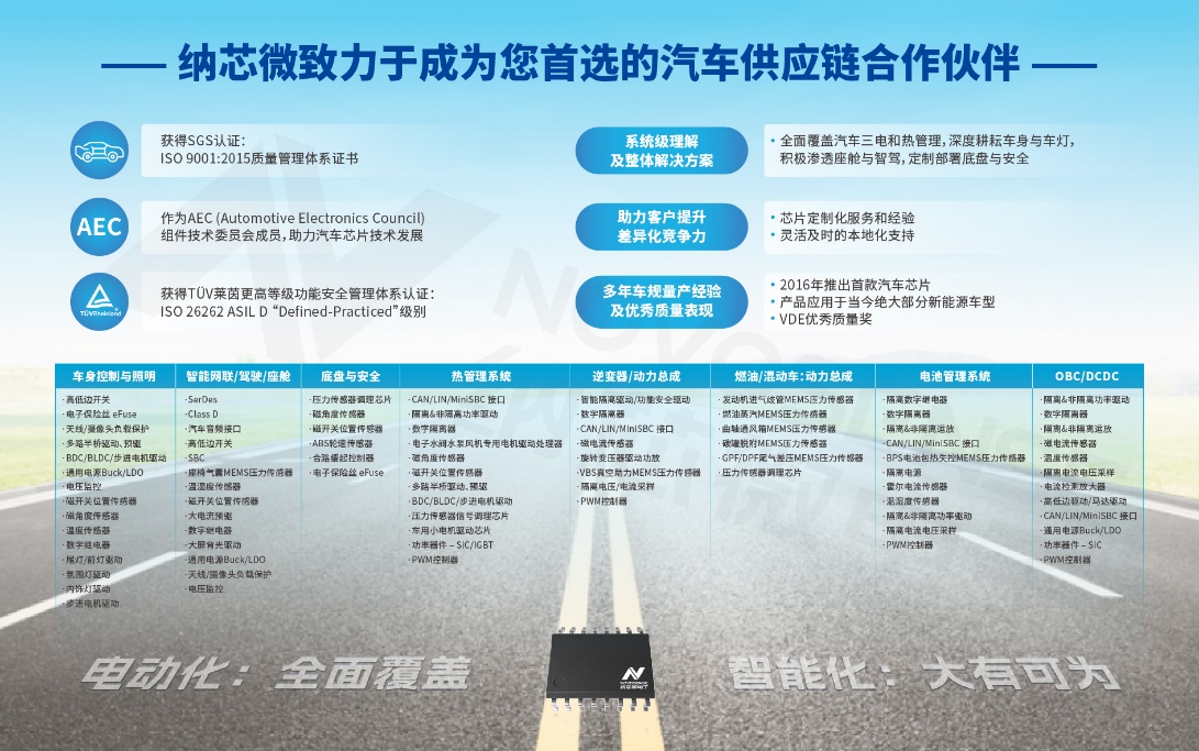从深度参与路线图3.0编制到构建汽车电子全场景系统方案,纳芯微正以实际行动推动中国汽车芯片产业向高效、低碳、智能的未来迈进,为构建更加安全、绿色、可持续的汽车新生态贡献“中国芯”力量。