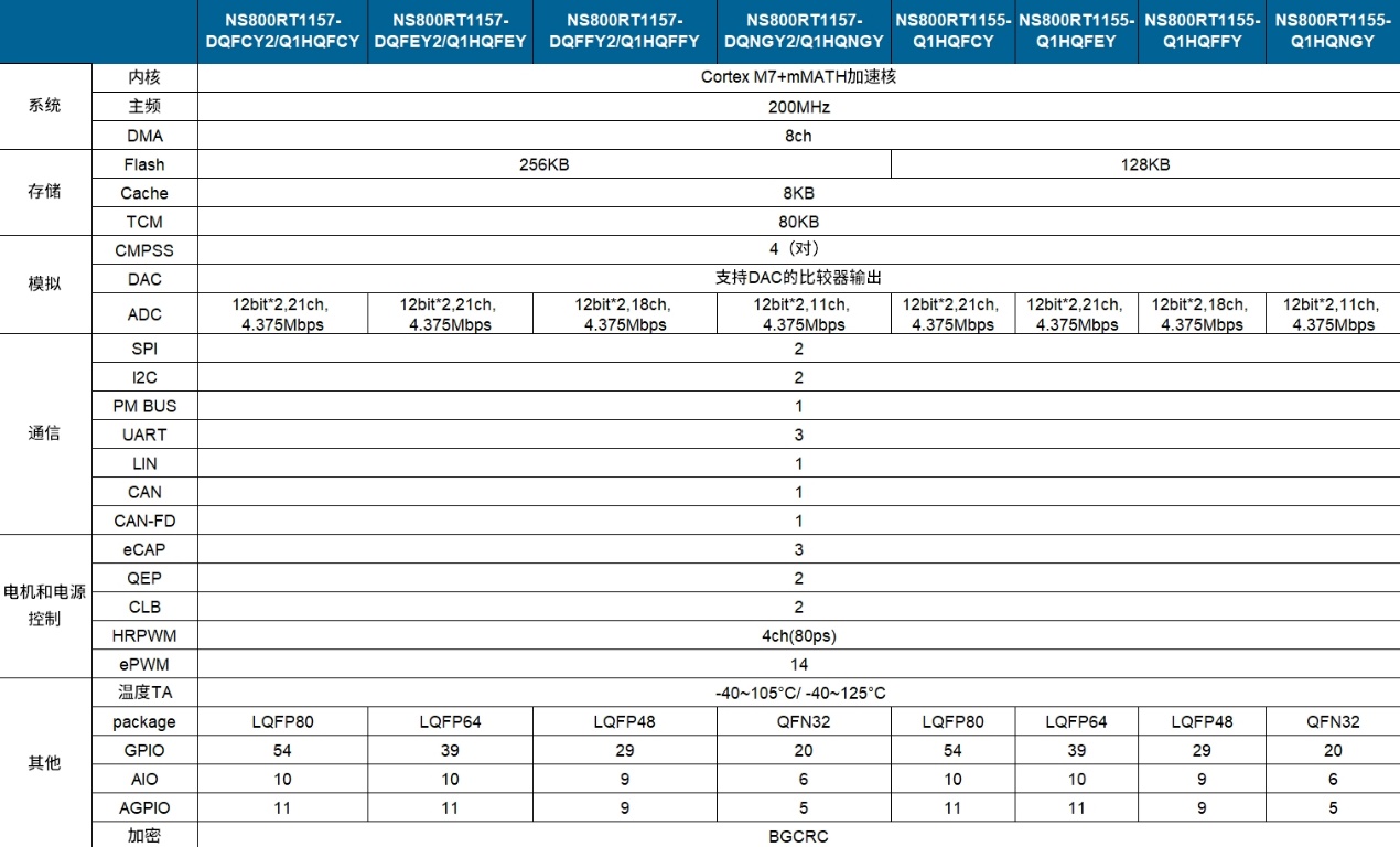 此外,NS800RT115x 系列提供 LQFP80/64/48、QFN32等多种封装,满足从高性能控制单元到紧凑型模块的不同设计需求。